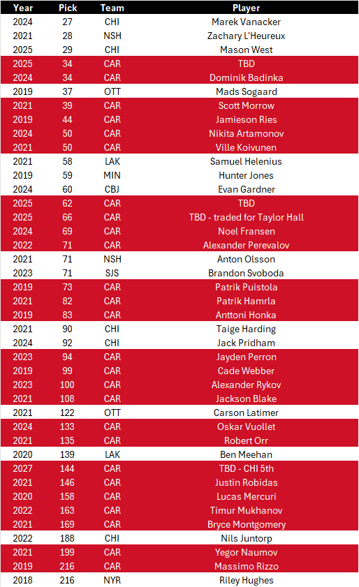In exchange for those marginal concessions, the Hurricanes have added 11 extra picks in rounds three through seven.
